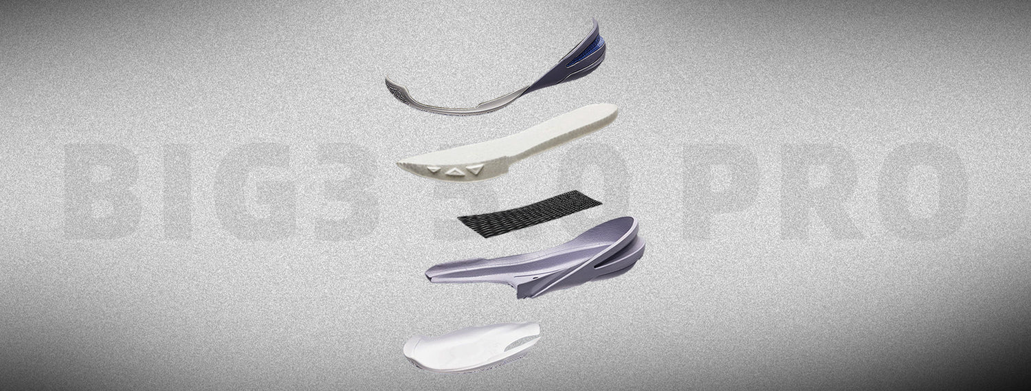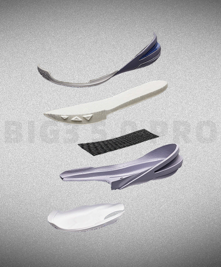 Large carbon-fiber plate for better force transmission and support, ensuring maximum flexibility in quick start and preventing torsion and rollover.