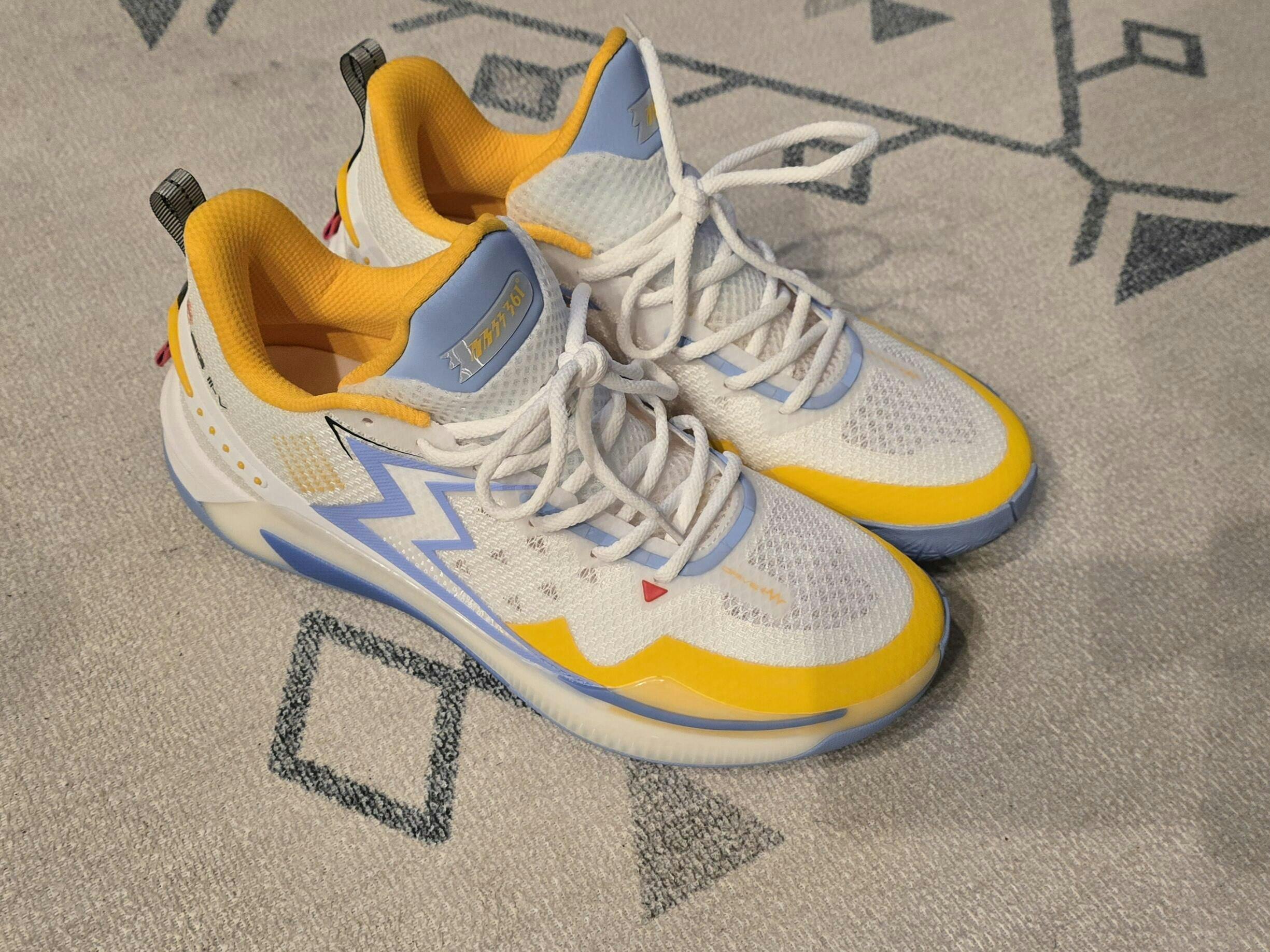 Upper knitted with a special woven technique called Jiaozong, which improves rigidity of the shoe structure, and therefore supports more sudden movements.