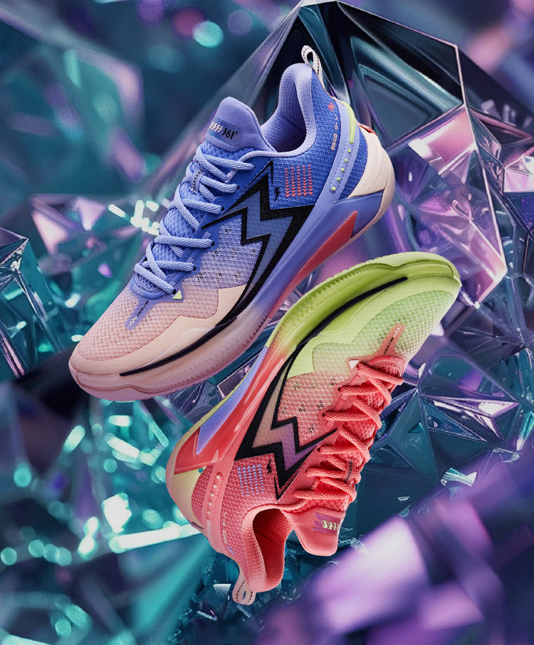 Upper knitted with a special woven technique called Jiaozong, which improves rigidity of the shoe structure, and therefore supports more sudden movements.