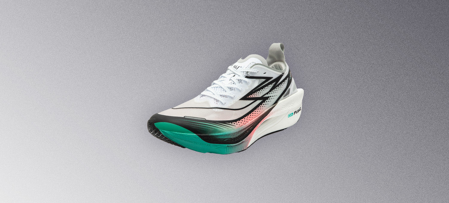 Qu!kBONE DYNAM!C carbon-fiber plate for support and rigidity, YES WINDOW for propulsion, and Qu!kFLAMECQT(FLAMECQT) midsole for springiness and cushioning.