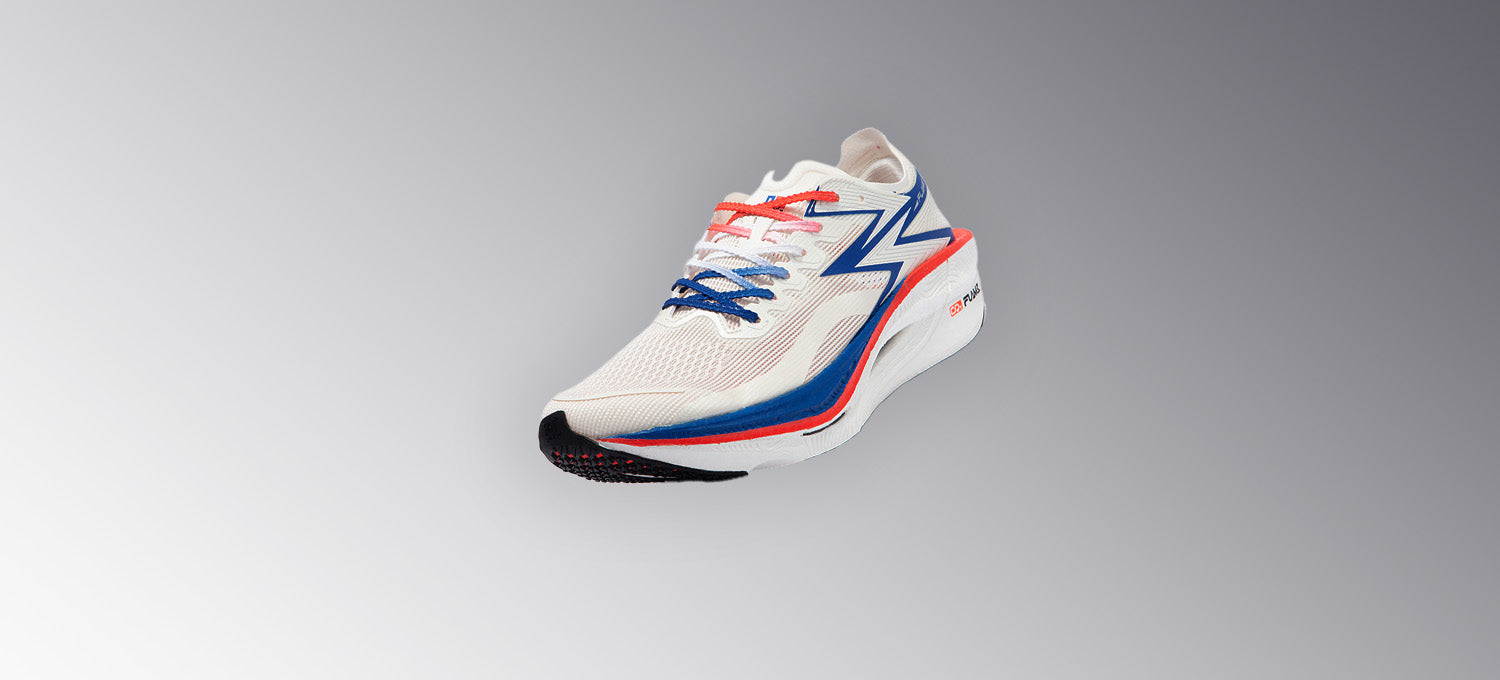 Qu!kBONE DYNAM!C carbon-fiber plate for customized support in running movements, which is operated by the cutouts on the plate with different techniques on different parts.