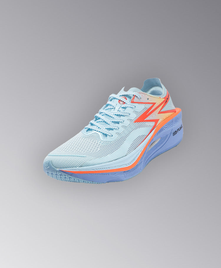 Qu!kBONE DYNAM!C カーボンファイバープレートを採用しています。プレート上の切り抜きは異なる部分に異なるテクニックが施されてランニング動作に合わせてカスタマイズされたサポートを提供します。