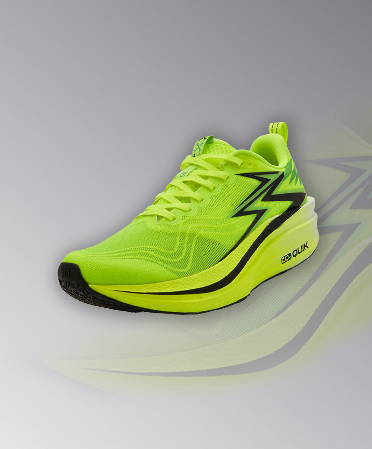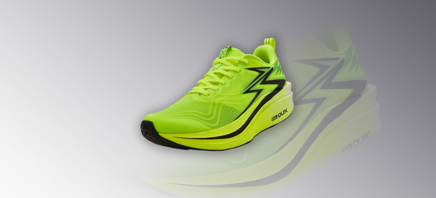 Qu!kCQTECH (CQT) midsole for lighter weight, more springiness, and better cushioning, accumulating more energy for running movements.