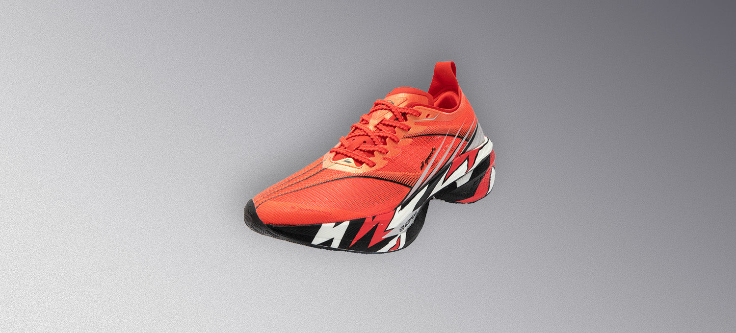 Wider heel structure for less pressure on ankle, effectively enhancing stability and support. Tough patterns on midfoot upper provide good lateral support, ideal for elite runners.