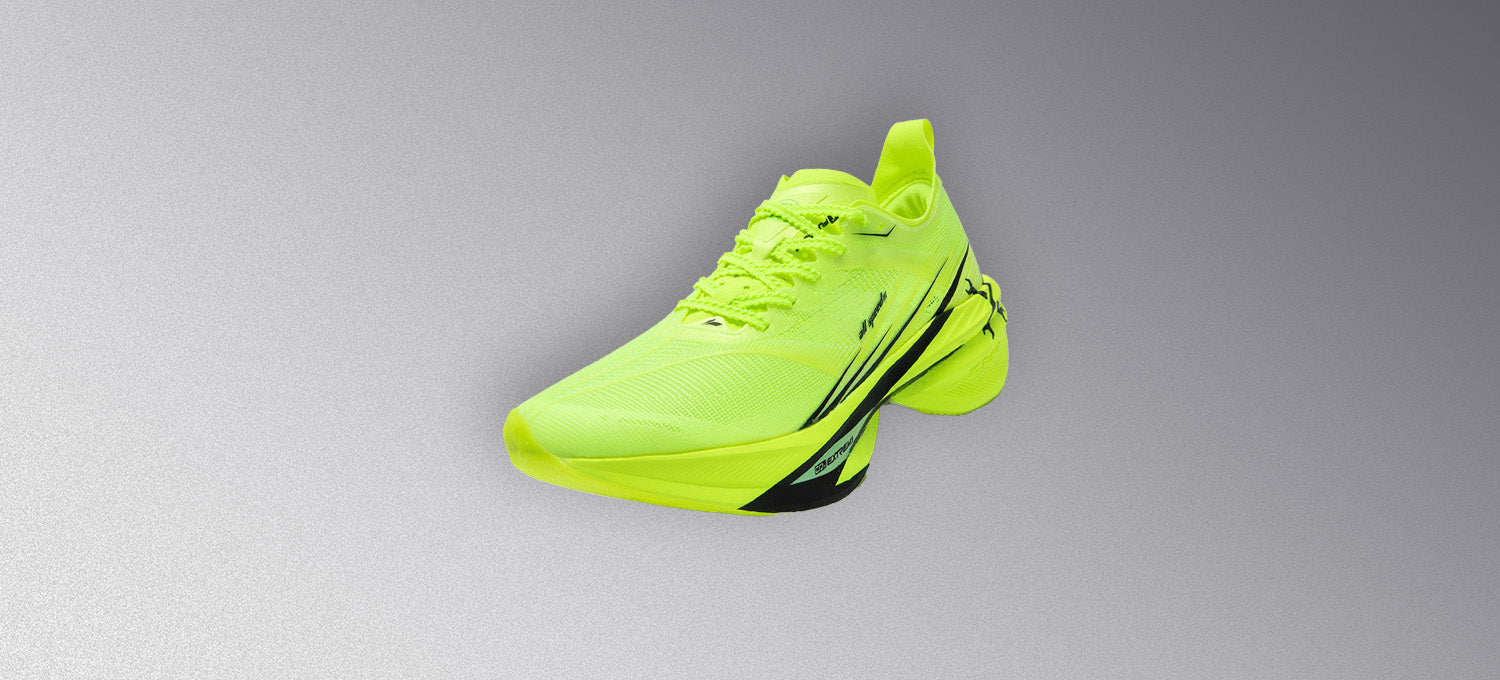 Wider heel structure for less pressure on ankle, effectively enhancing stability and support. Tough patterns on midfoot upper provide good lateral support, ideal for elite runners.