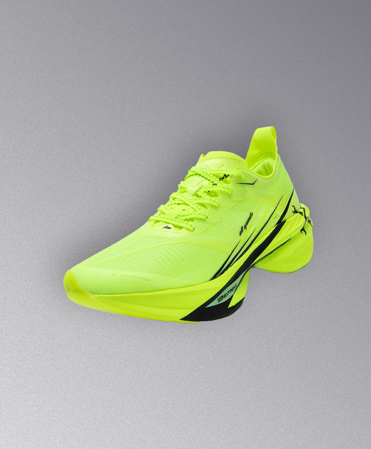 Qu!kBONE DYNAM!C carbon-fiber plate designed between two midsole layers for customized rigidity and support in running activities, which is operated by the cutouts on the plate with different techniques on different parts.