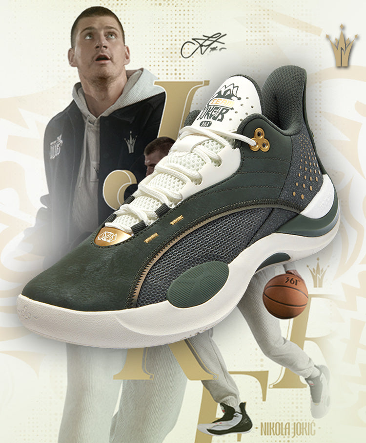 Large surrounding TPU on the heel for lockdown, providing enough stability and support for cutting. Heel TPU decorated with a huge Jokic's crown logo for fashion and style.